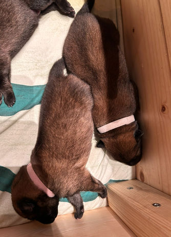 Die Babys haben sich schnell an die neu gewonnene "Freiheit" gewöhnt und werden von Stunde zu Stunde sicherer in ihren Bewegungen. Bei uns gibt es tagtäglich "Welpen TV", es ist einfach so unfassbar schön, diesen kleinen Wesen zuzusehen.